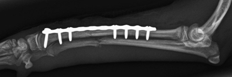 持続する右後肢の挙上、疼痛