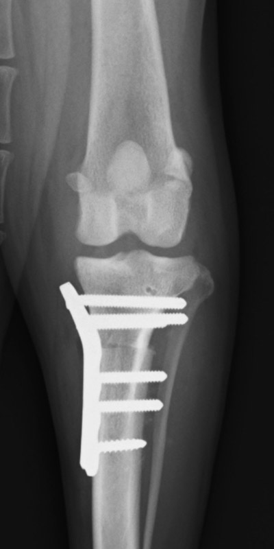 ただ近年では脛骨を骨切りして膝関節の角度を改変させることで安定化させる「TPLO(脛骨高平部水平化骨切り術)」という手術法を行ったほうが他の手術法に比較して経過がよいという報告が多いため、当院ではTPLO法を主に行っております。
