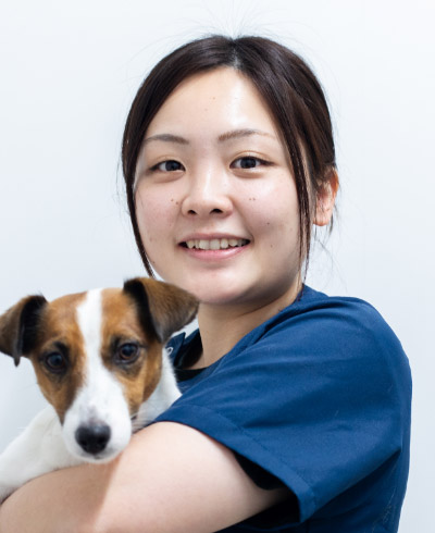 2019年に卒業をしてから、地元の千葉を離れ当院にて勤務させていただいております。まだ獣医師としては経験も浅く未熟な部分も多いと自覚しておりますが、最善の治療や選択を提供できるよう日々努力しています。ご家族の気持ちに寄り添って診察をすることを心掛けておりますので、小さなことでもご気軽にご相談ください。